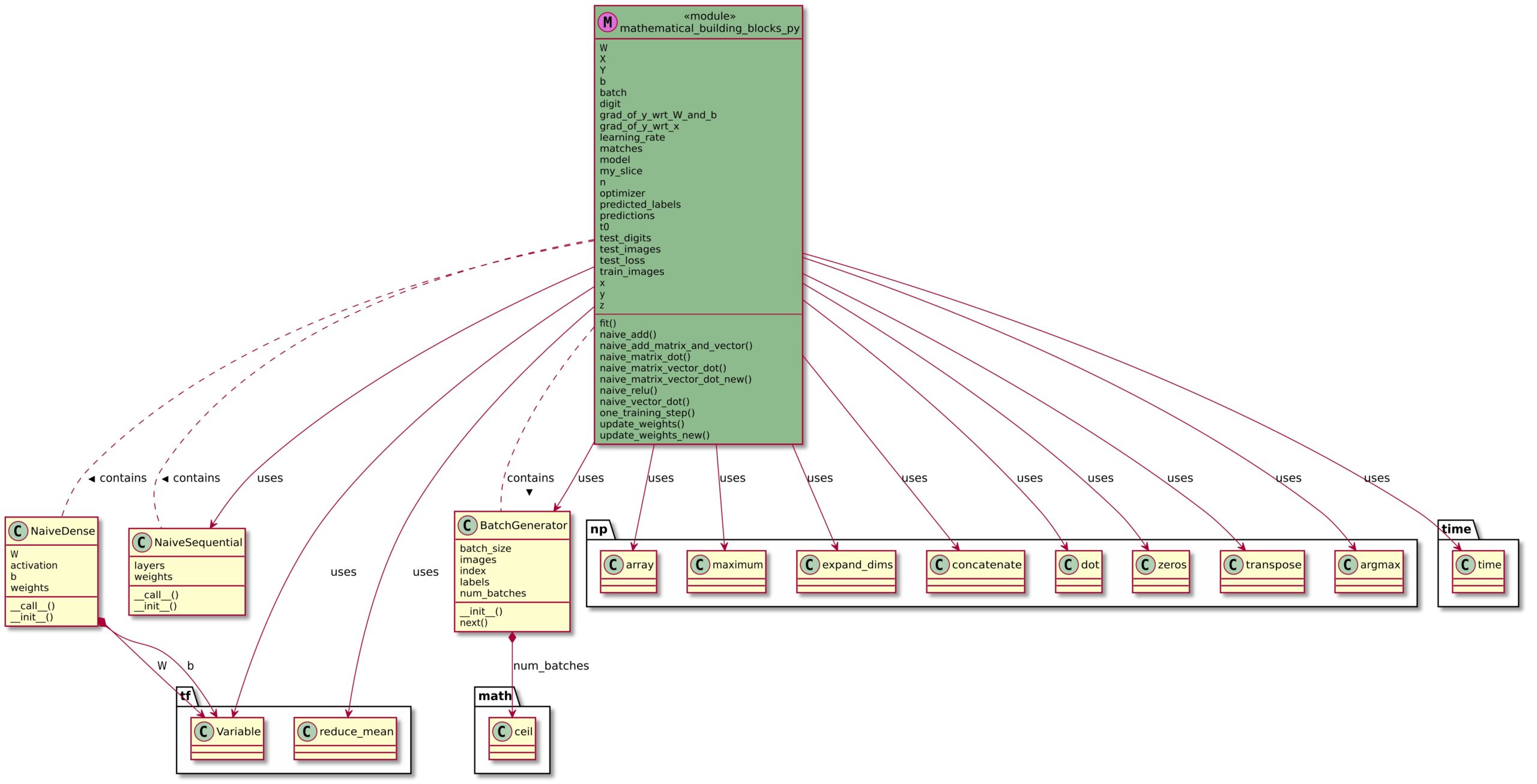 - This post is my first lesson in the Mathematical Building Blocks For Deep Learning. I have used the Neural Network approach to be the starting block with a heavy dependence on the MNIST (Modified National Institute of Standards and Technology) database. I have included the UML class model along with the Python code (program) for those who are interested in providing feedback or helping me in my journey.